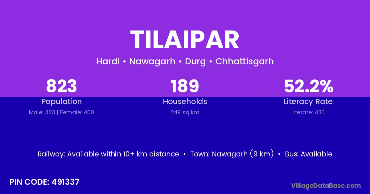 According to Census 2011 information, the village code of Tilaipar village is 491337.