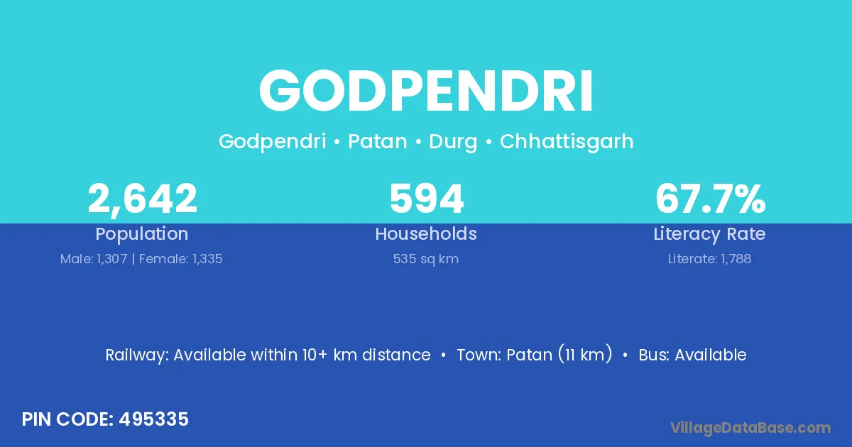 Godpendri village has a total population of 2,642 people, of which 1,307 are males and 1,335 are females.