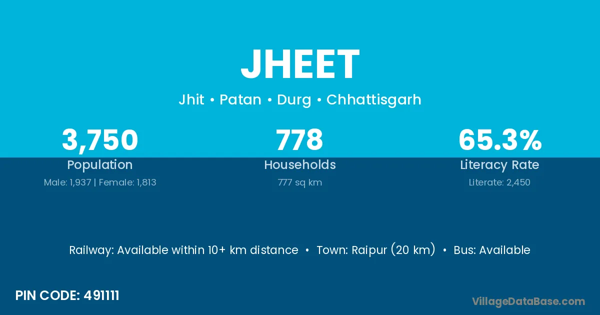 Raipur (20 km) is the nearest town to Jheet village for major economic activities and is located approximately 20 km away.