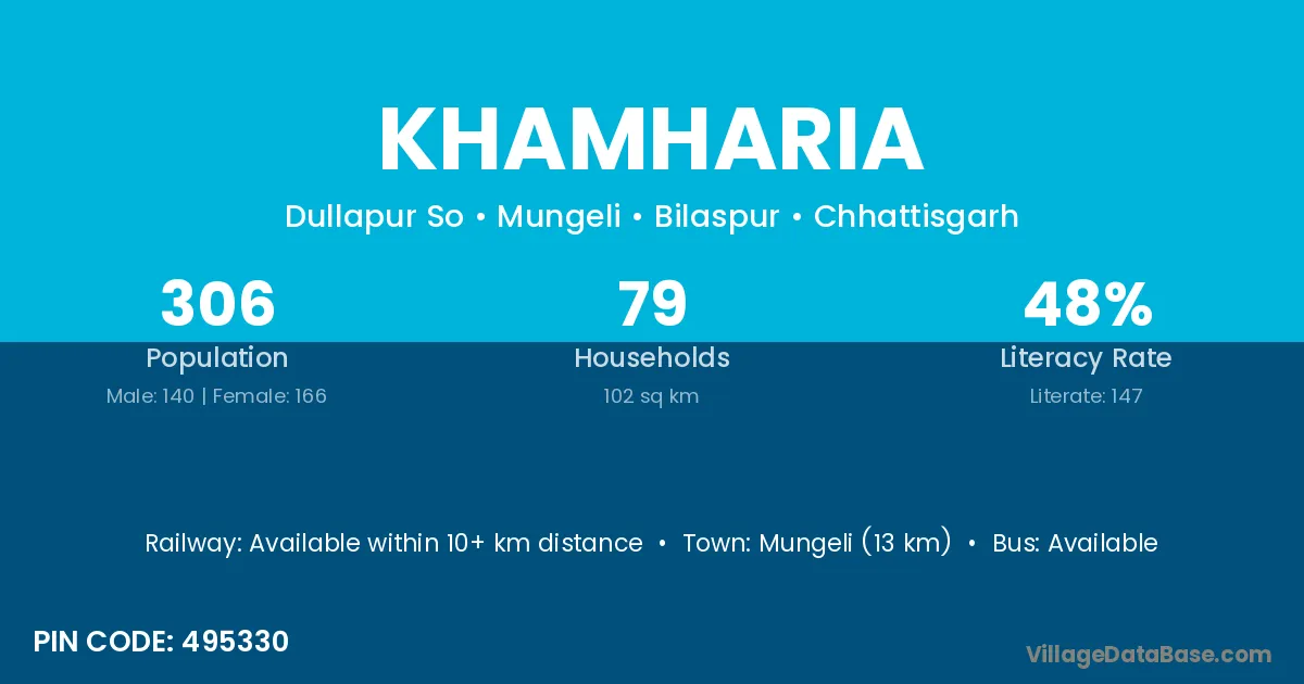 Patan (20 km) is the nearest town to Khamharia village for major economic activities and is located approximately 20 km away.