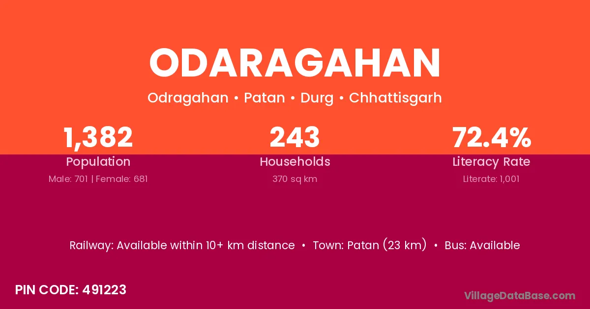 Patan (23 km) is the nearest town to Odaragahan village for major economic activities and is located approximately 23 km away.
