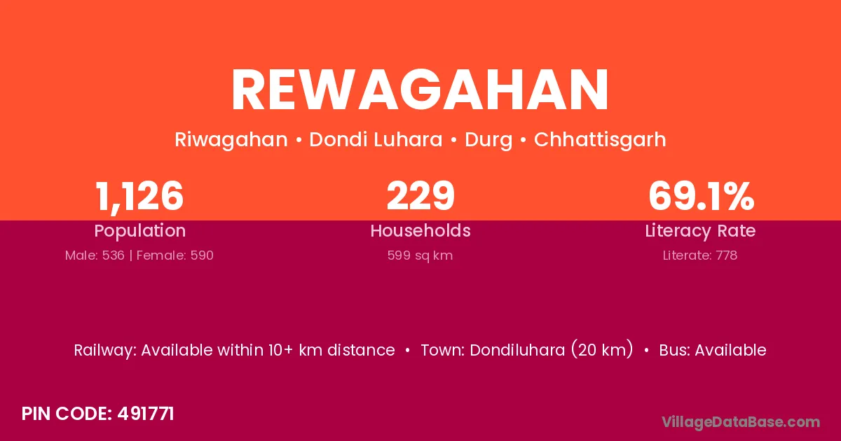 Gunderdehi (15 km) is the nearest town to Rewagahan village for major economic activities and is located approximately 15 km away.