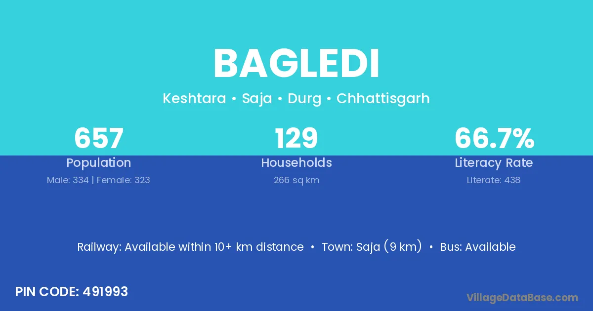 Bagledi village is located in the Saja Tehsil of the Durg district in Chhattisgarh .