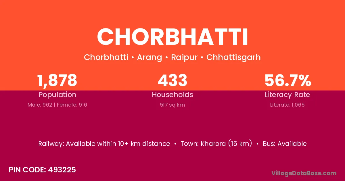 According to Census 2011 information, the village code of Chorbhatti village is 491993.