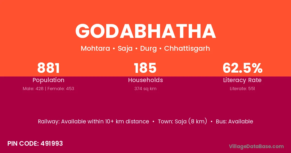 Godabhatha village has a total population of 881 people, of which 428 are males and 453 are females.