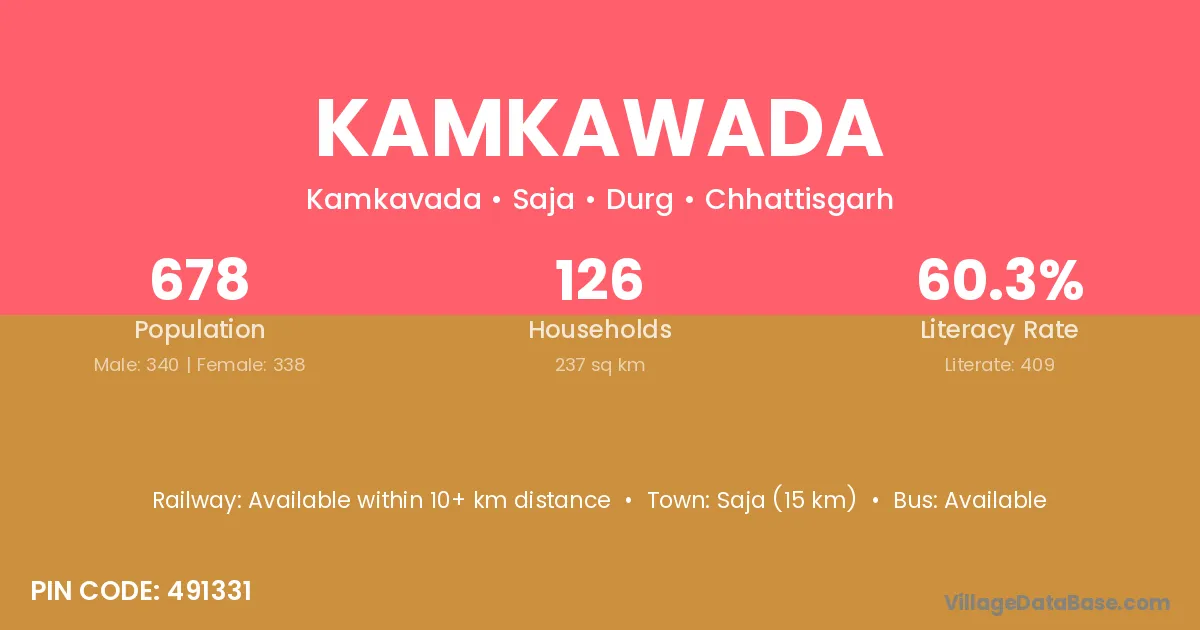 Kamkawada village has a total population of 678 people, of which 340 are males and 338 are females.