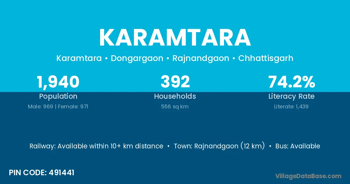 According to Census 2011 information, the village code of Karamtara village is 491993.