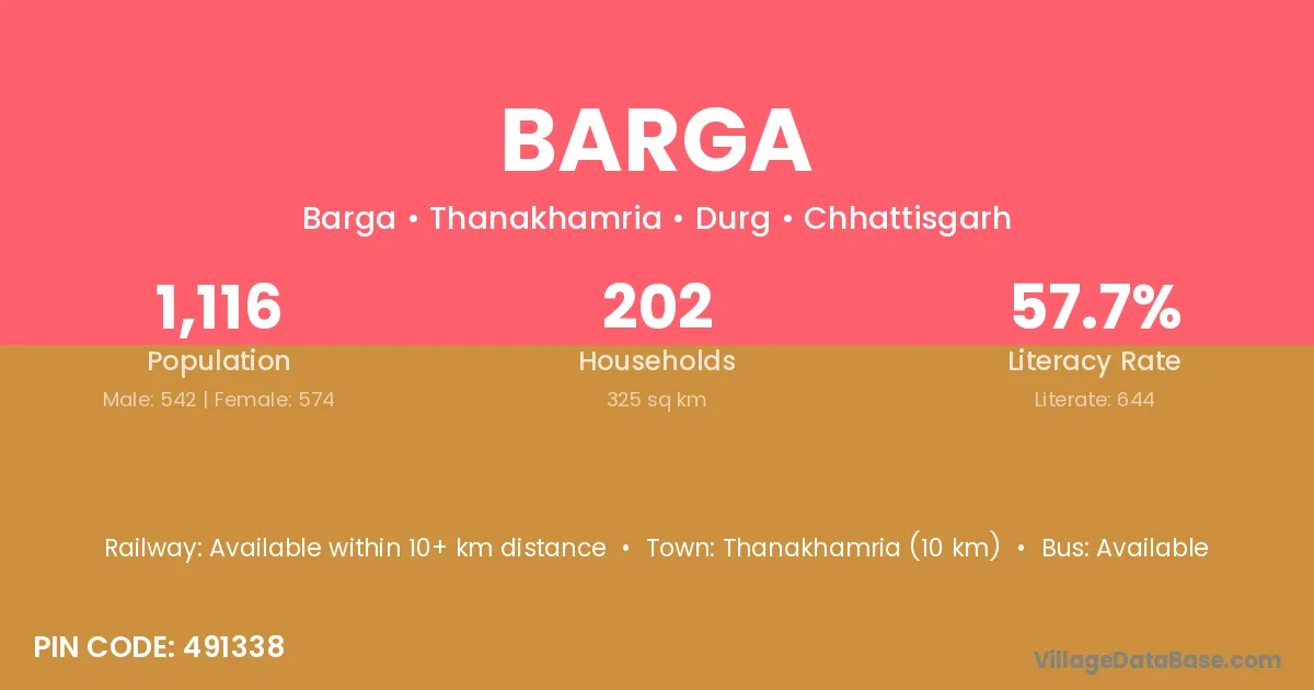 Barga village is located in the Thanakhamria Tehsil of the Durg district in Chhattisgarh .