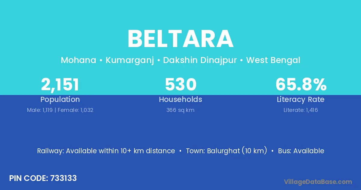 Thanakhamria (13 km) is the nearest town to Beltara village for major economic activities and is located approximately 13 km away.