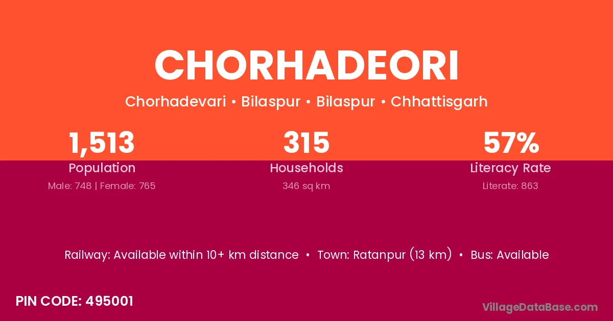 Champa (29 km) is the nearest town to Chorhadeori village for major economic activities and is located approximately 29 km away.
