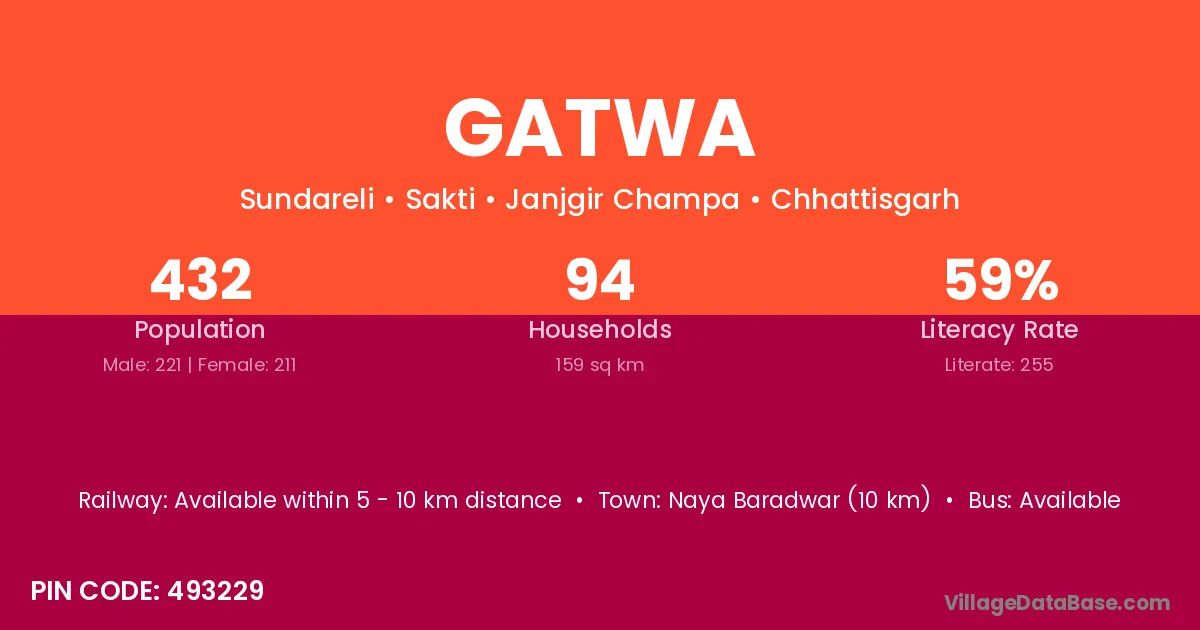 Champa (35 km) is the nearest town to Gatwa village for major economic activities and is located approximately 35 km away.