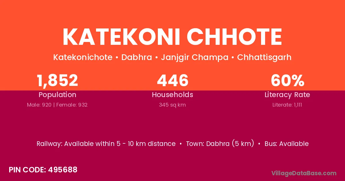 Katekoni Chhote village has a total population of 1,852 people, of which 920 are males and 932 are females.