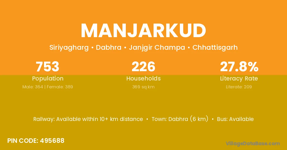 There are approximately 226 households in Manjarkud village.