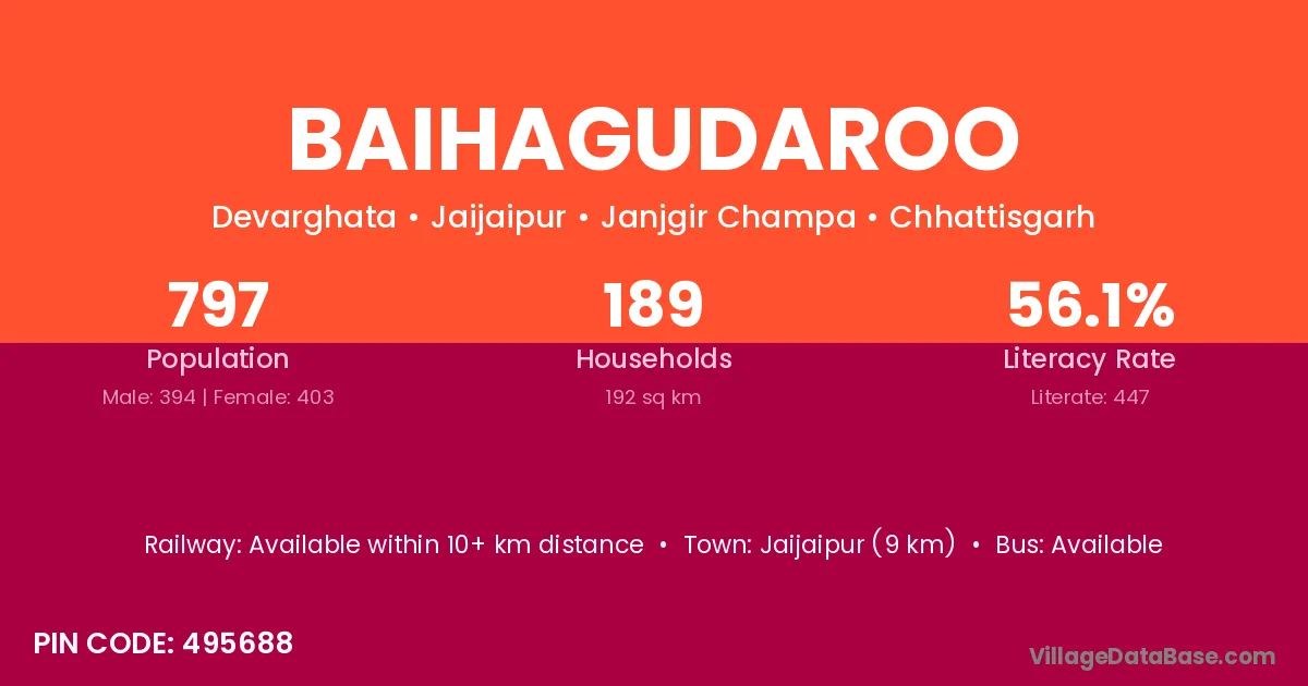 Baihagudaroo village is located in the Jaijaipur Tehsil of the Janjgir Champa district in Chhattisgarh .