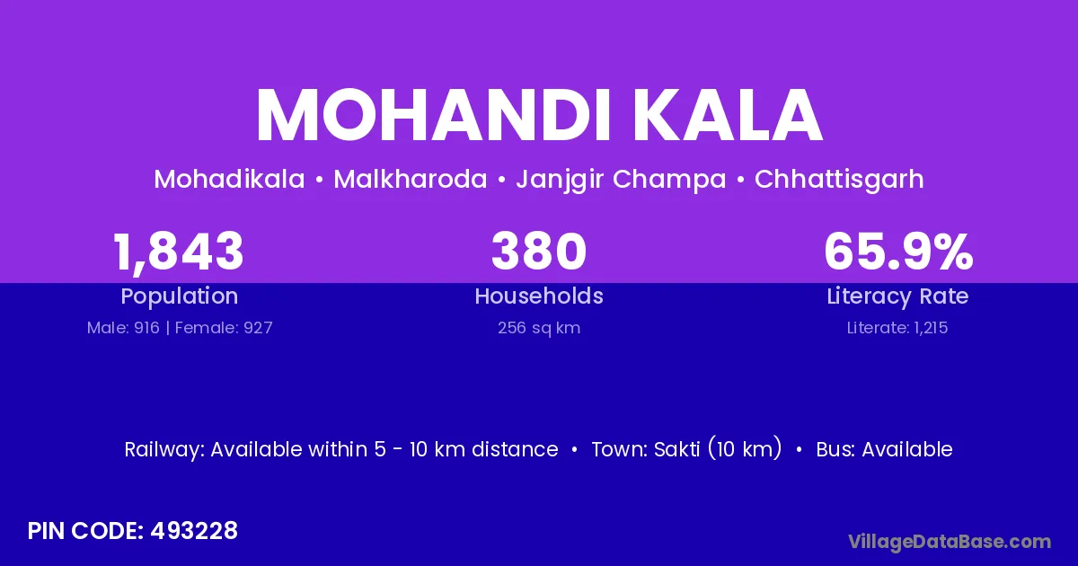 Sakti (10 km) is the nearest town to Mohandi Kala village for major economic activities and is located approximately 10 km away.