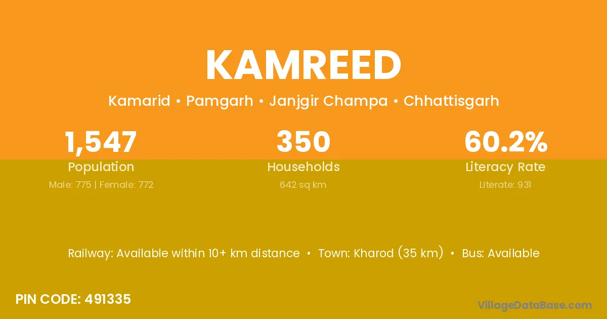 According to Census 2011 information, the village code of Kamreed village is 491335.