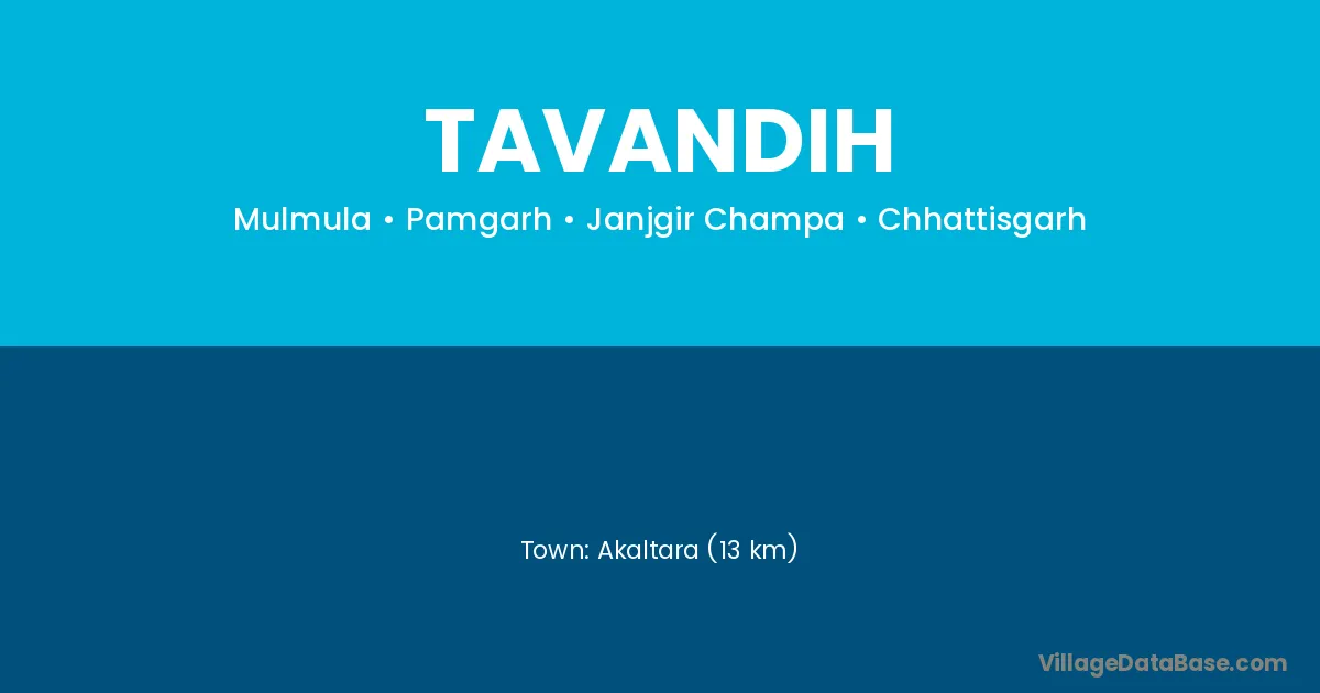 Akaltara (13 km) is the nearest town to Tavandih village for major economic activities and is located approximately 13 km away.