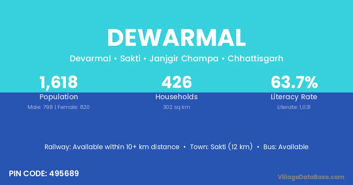 Sakti (12 km) is the nearest town to Dewarmal village for major economic activities and is located approximately 12 km away.