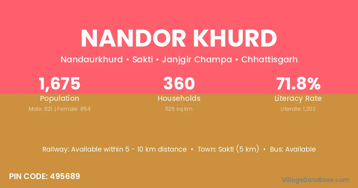 Sakti (5 km) is the nearest town to Nandor Khurd village for major economic activities and is located approximately 5 km away.