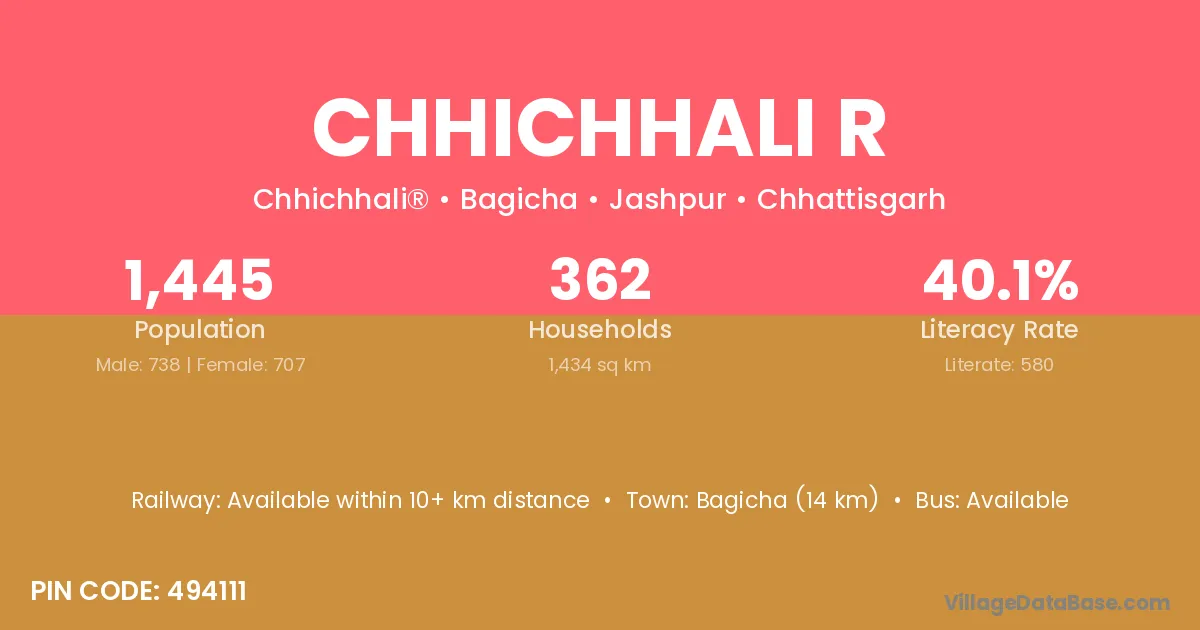 Chhichhali R village has a total population of 1,445 people, of which 738 are males and 707 are females.