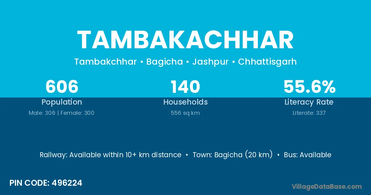 Tambakachhar village is located in the Bagicha Tehsil of the Jashpur district in Chhattisgarh .