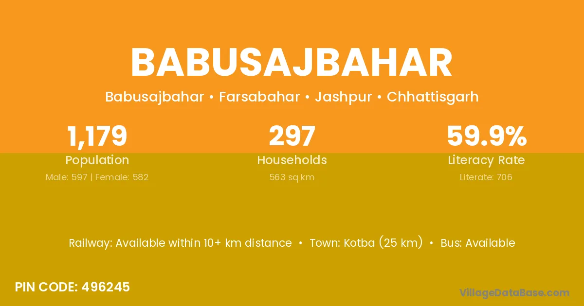 Babusajbahar village has a total population of 1,179 people, of which 597 are males and 582 are females.