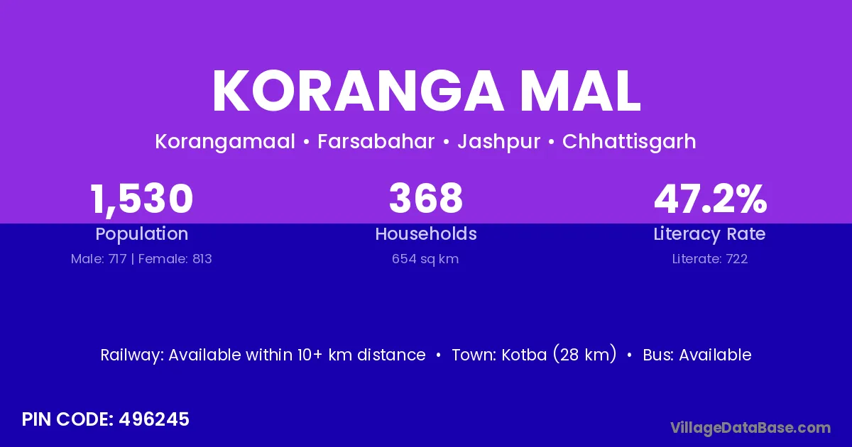 Koranga Mal village is located in the Farsabahar Tehsil of the Jashpur district in Chhattisgarh .