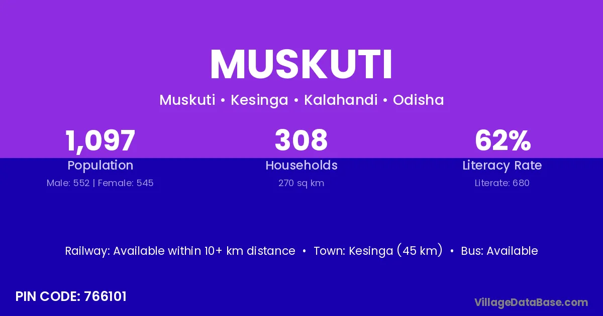 According to Census 2011 information, the village code of Muskuti village is 496223.