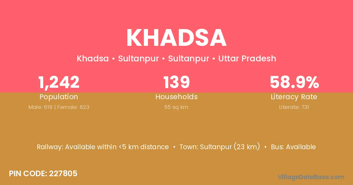 Jashpur Nagar (36 km) is the nearest town to Khadsa village for major economic activities and is located approximately 36 km away.