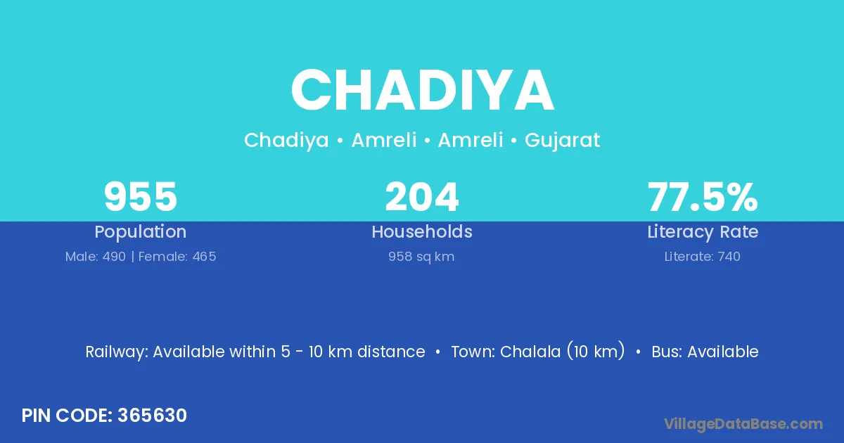 According to Census 2011 information, the village code of Chadiya village is 496118.