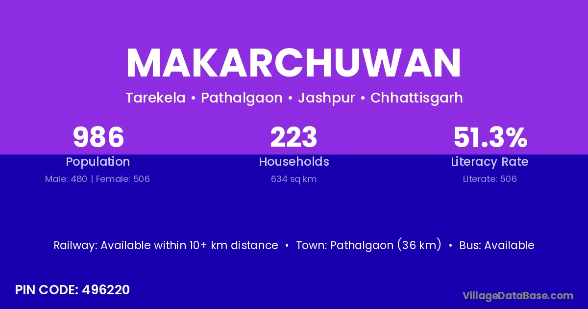 Makarchuwan village has a total population of 986 people, of which 480 are males and 506 are females.