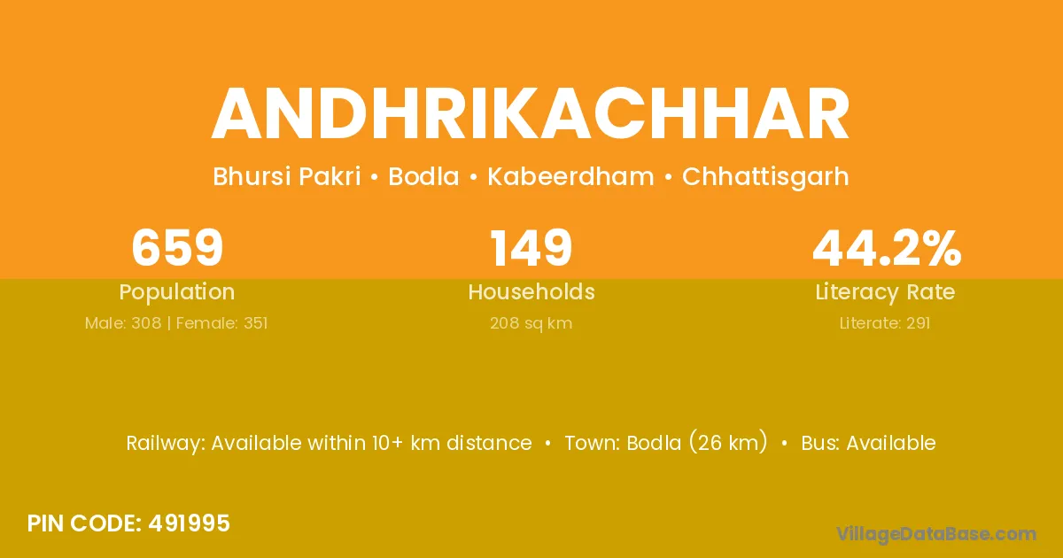 Bodla (26 km) is the nearest town to Andhrikachhar village for major economic activities and is located approximately 26 km away.