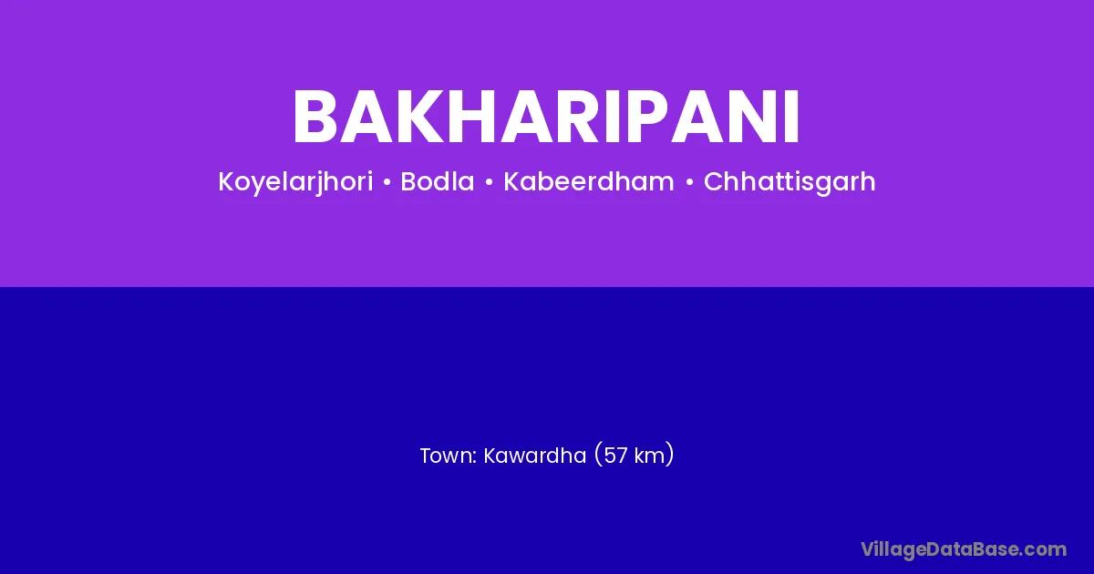 Kawardha (57 km) is the nearest town to Bakharipani village for major economic activities and is located approximately 57 km away.