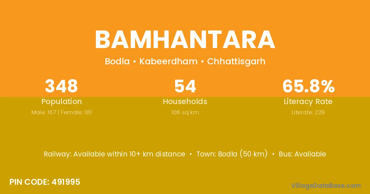Bamhantara village is located in the Bodla Tehsil of the Kabeerdham district in Chhattisgarh .