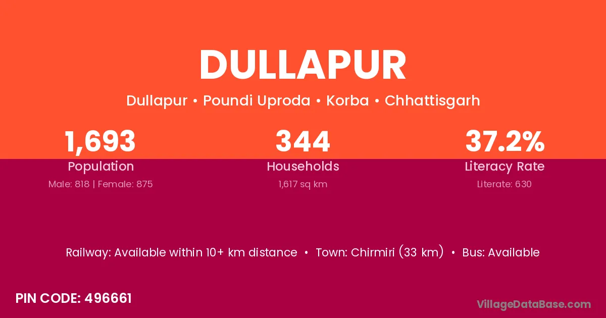 According to Census 2011 information, the village code of Dullapur village is 491995.
