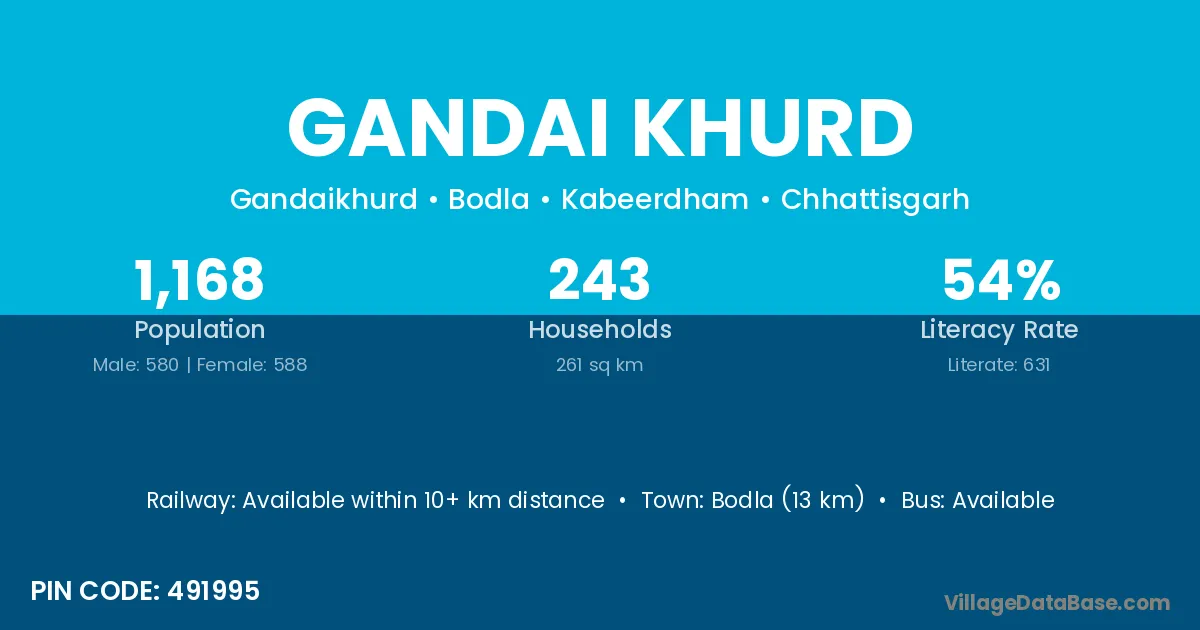 According to Census 2011 information, the village code of Gandai Khurd village is 491995.