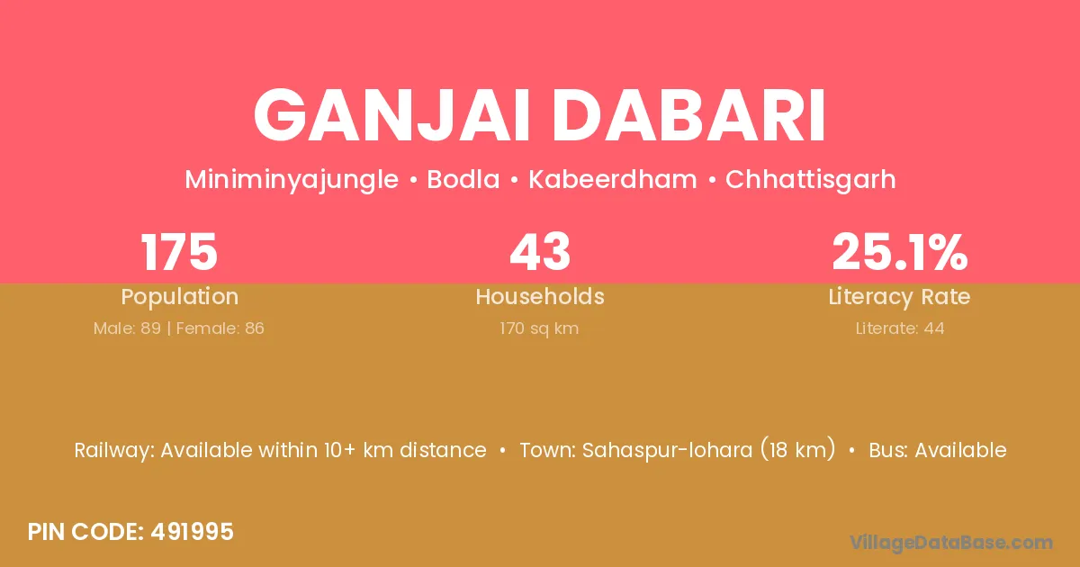 Ganjai Dabari village has a total population of 175 people, of which 89 are males and 86 are females.