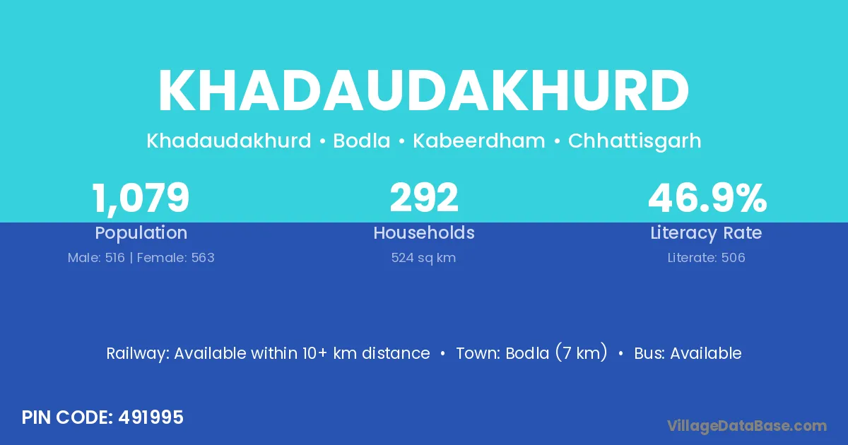 According to Census 2011 information, the village code of Khadaudakhurd village is 491995.