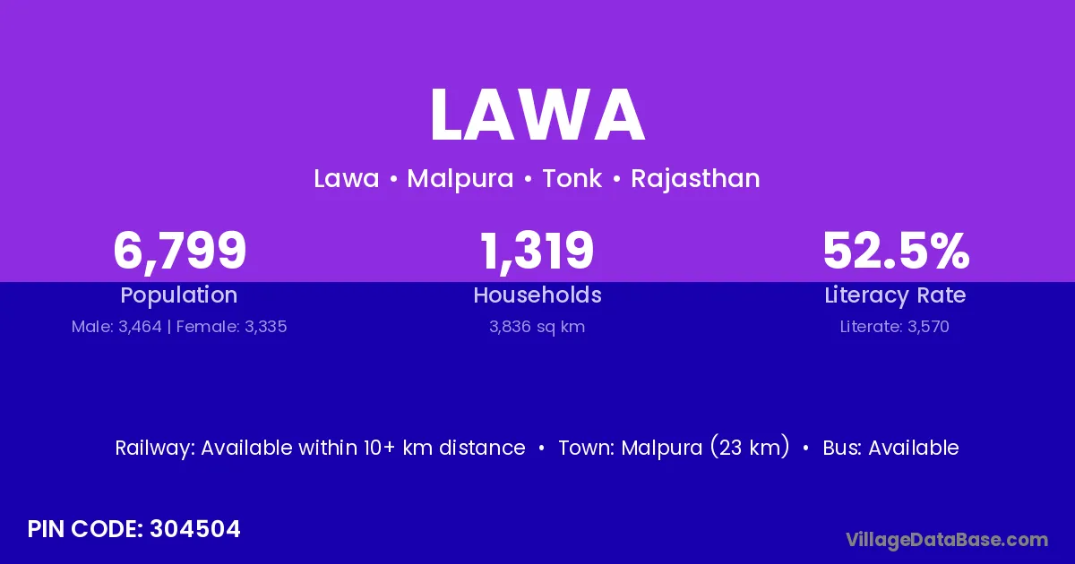 Sahaspur-lohara (24 km) is the nearest town to Lawa village for major economic activities and is located approximately 24 km away.