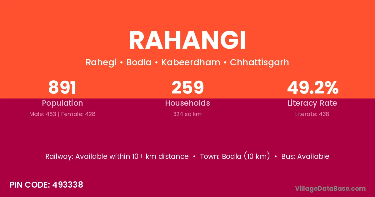 According to Census 2011 information, the village code of Rahangi village is 493338.