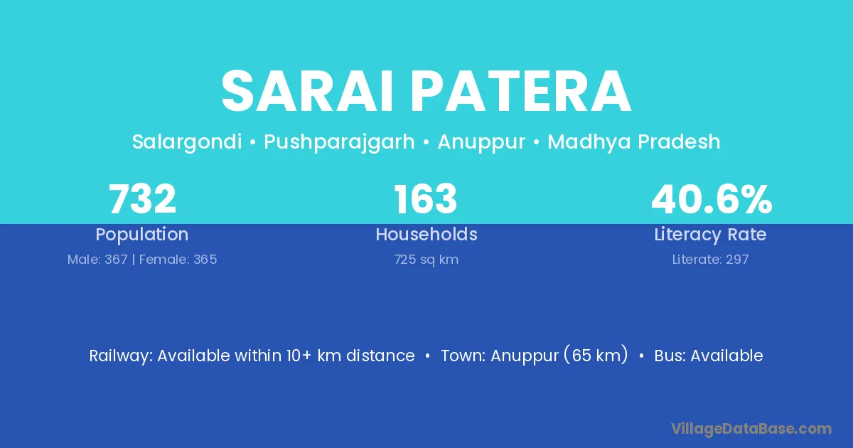 The literacy rate of Sarai Patera village is 52.20%. Male literacy stands at 62.64% and female literacy at 40.43%.