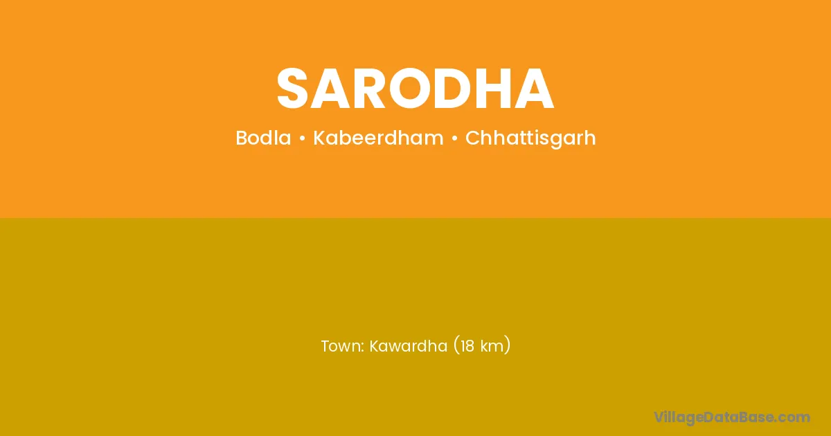 Kawardha (18 km) is the nearest town to Sarodha village for major economic activities and is located approximately 18 km away.