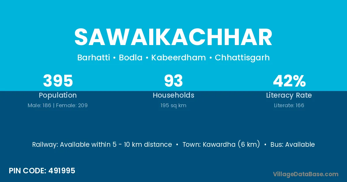 Kawardha (6 km) is the nearest town to Sawaikachhar village for major economic activities and is located approximately 6 km away.