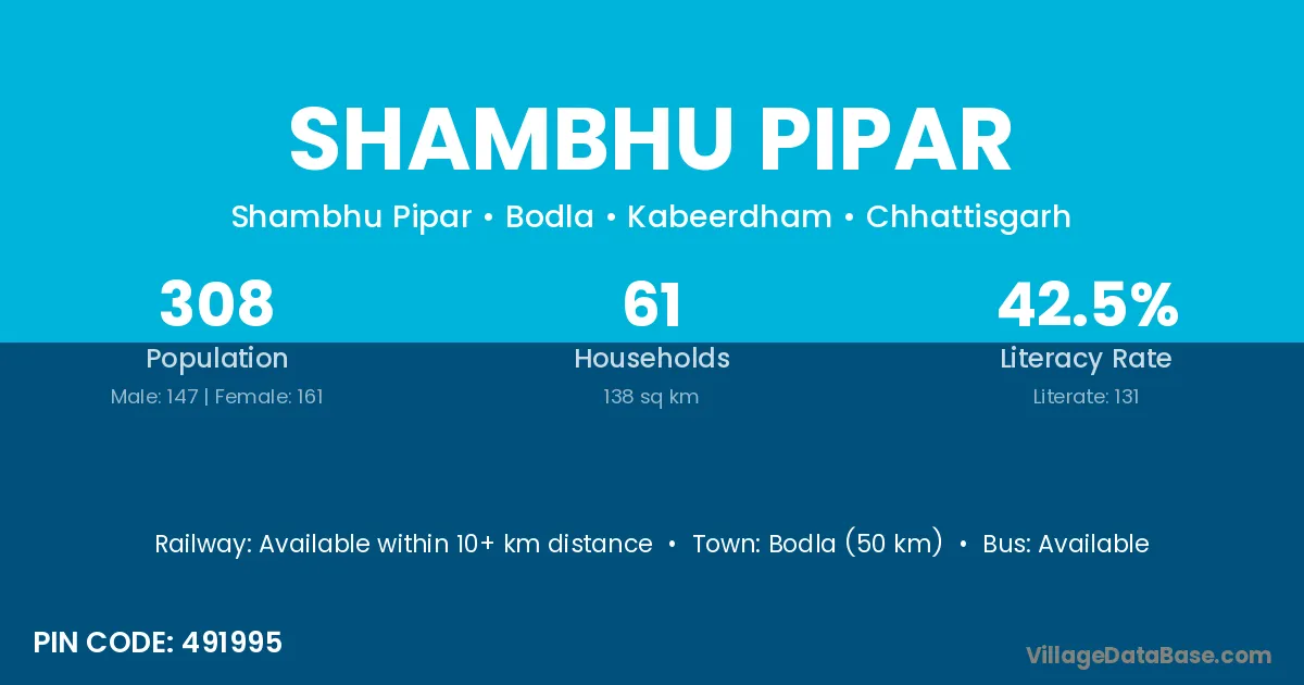 Shambhu Pipar village has a total population of 308 people, of which 147 are males and 161 are females.