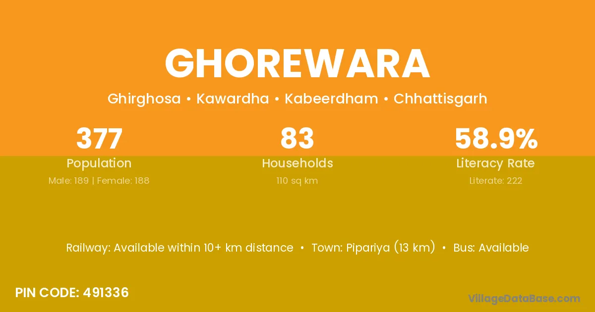 According to Census 2011 information, the village code of Ghorewara village is 491336.