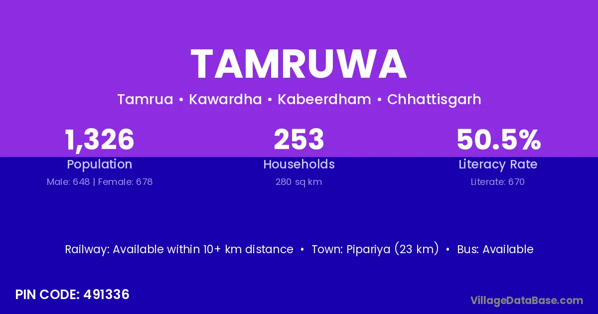 Tamruwa village is located in the Kawardha Tehsil of the Kabeerdham district in Chhattisgarh .