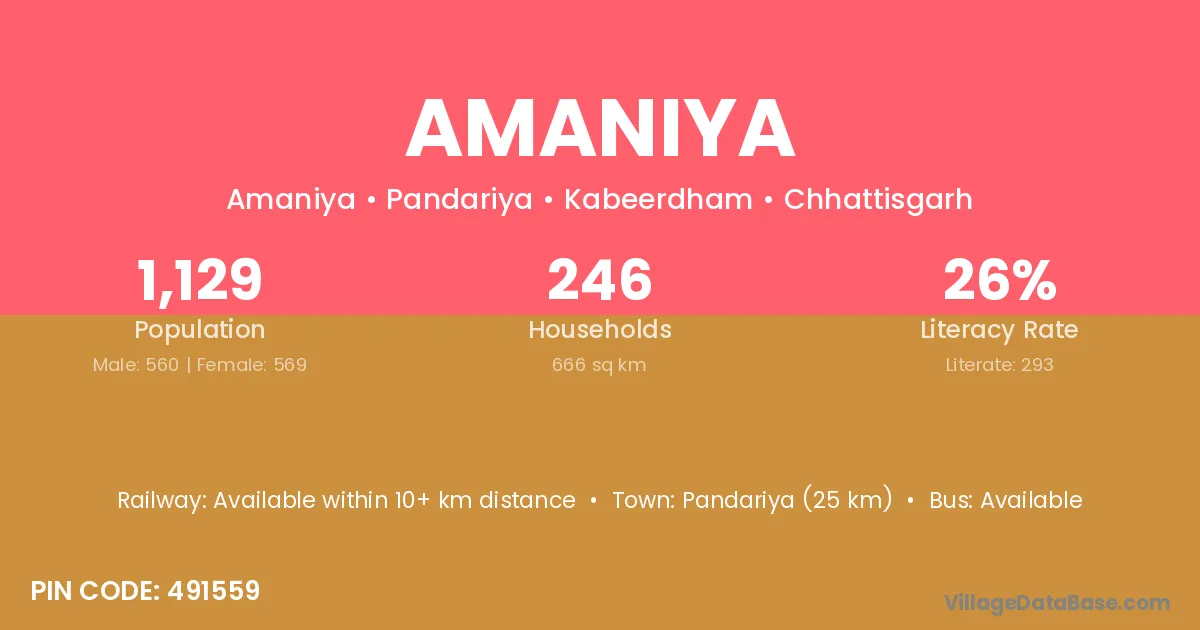 Pandariya (25 km) is the nearest town to Amaniya village for major economic activities and is located approximately 25 km away.