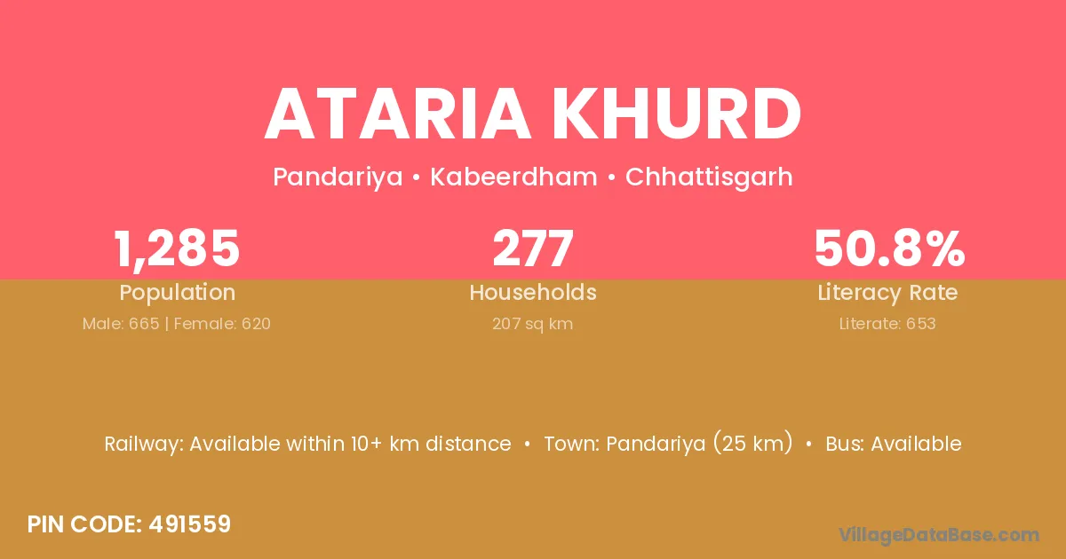 Pandariya (25 km) is the nearest town to Ataria Khurd village for major economic activities and is located approximately 25 km away.