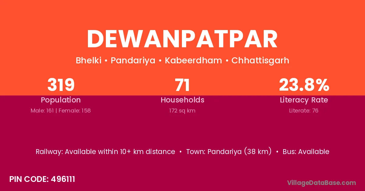 Dewanpatpar village has a total population of 319 people, of which 161 are males and 158 are females.
