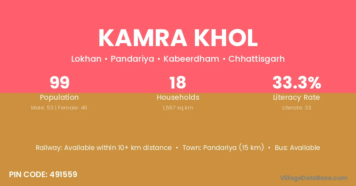 Pandariya (15 km) is the nearest town to Kamra Khol village for major economic activities and is located approximately 15 km away.